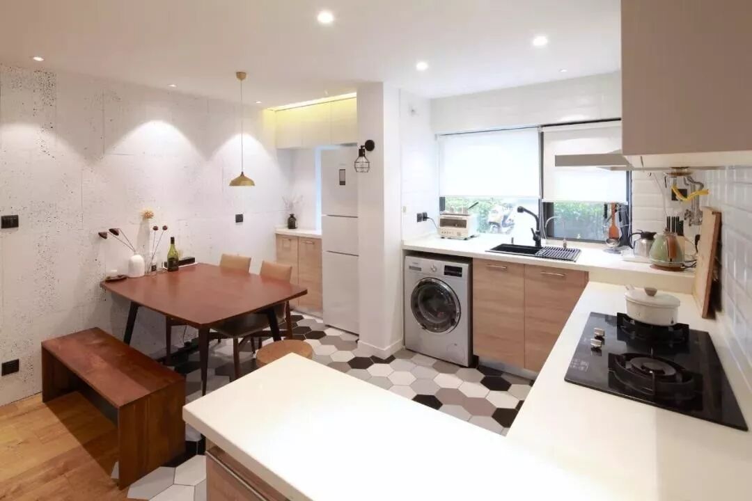 卷帘有半遮光和全遮光可选择,在厨房中可以用半遮光卷帘,不担心下端碰到湿漉漉的台面,拉起来时水花四溅,又能挡住刺眼的光线,保证操作台采光充足。