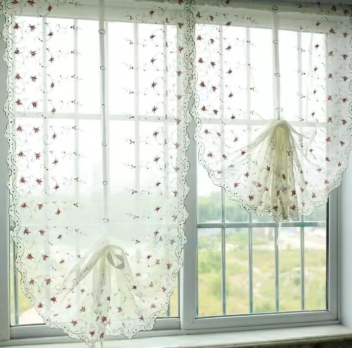 纱帘材质的扇形罗马帘,折起来时像是美少女的及地长裙,仙气飘飘。