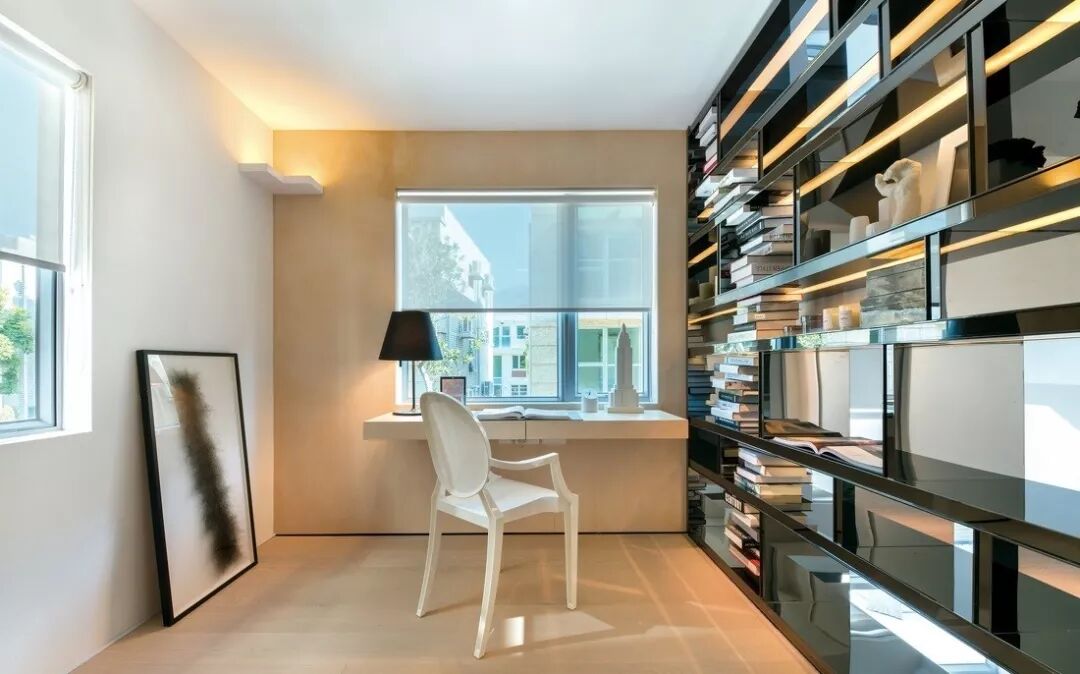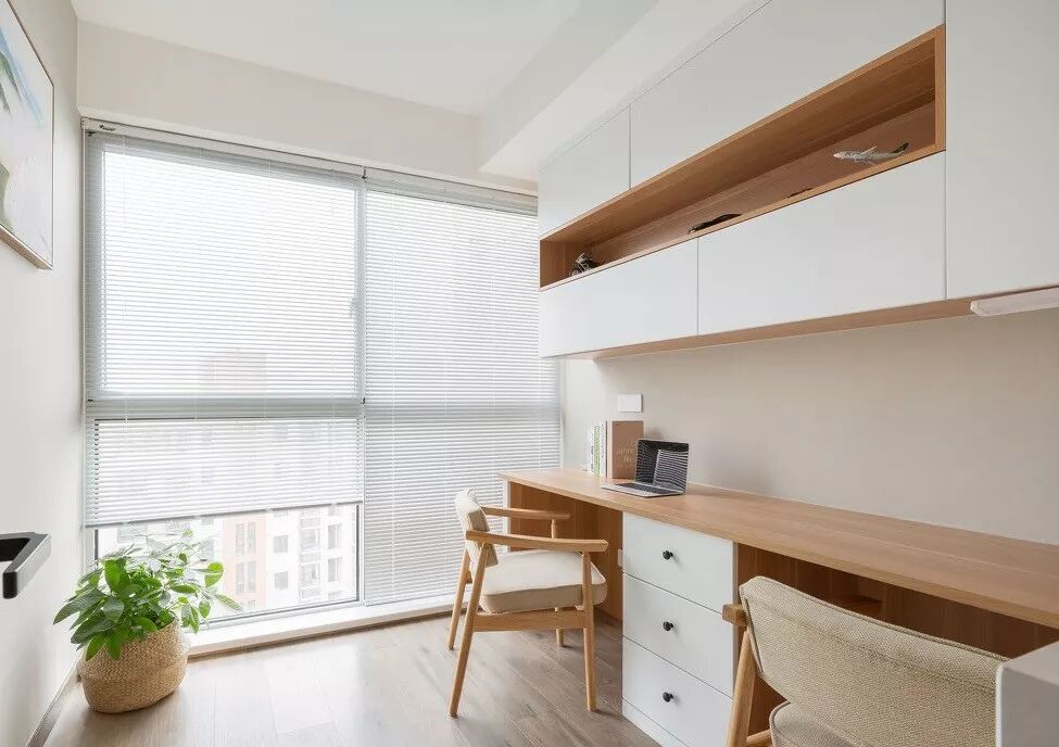 书房需要调节光线,用百叶帘是个不错的选择,尤其是桌面靠着窗户时,光线太刺眼对眼睛不好哦!