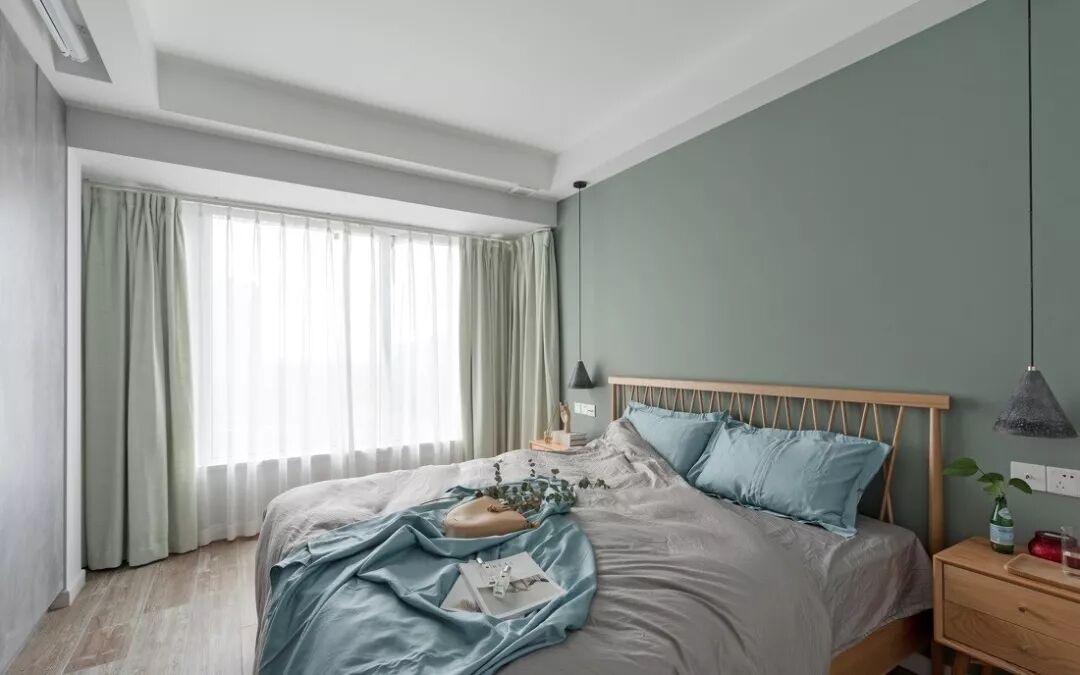 纯色布艺遮光帘搭配一层白纱帘,经典不过时。