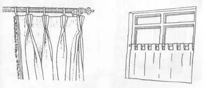 ◆ 窗帘分为六种样式直立式、顶套式、开门式、串线垂花式、直式帷幔、曲式垂花帷幔。