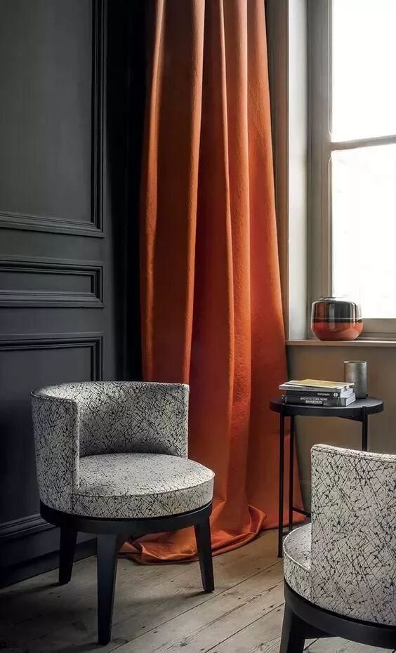 比较受欢迎的颜色有橙色、深蓝、墨绿、脏粉等,具体怎么搭,还要看整个空间的其他家具及装饰,因为窗帘也是软装的一部分呐。