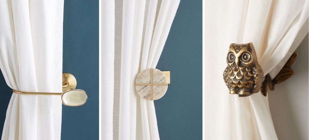 带有一些黄铜质感的“古董”挂钩,总是能恰到好处地给轻奢窗帘增添姿色。