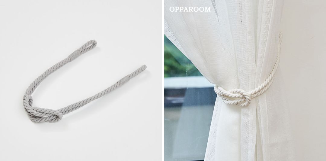 像纱帘或者亚麻窗帘这种薄帘,不需要太夸张的绑带,简简单单一根绳子就可以很美。