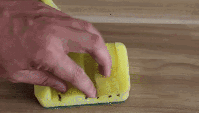 再用剪刀沿着点修剪海绵