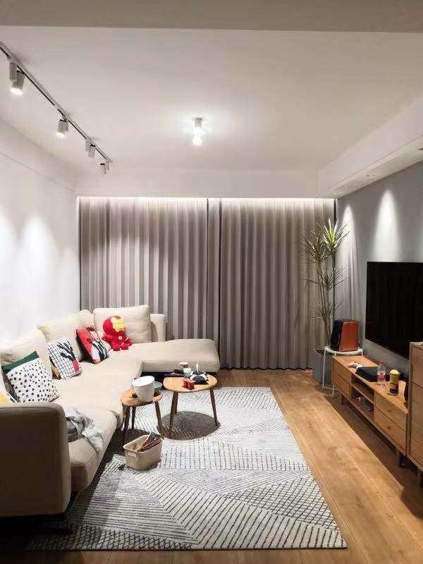 纯色窗帘也很好搭配,没有花纹,视觉上会比较统一,很符合现代人简洁的审美观!
