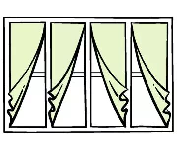 2、假如在炎热的夏日或寒风凌冽的冬季,每扇窗都装上一副窗帘可以更好的遮挡与隔绝室外的气候,这种窗帘造型简洁流畅,可以根据需要拉开或拉上某一个窗的窗帘,同时也提供了很好的私密性。