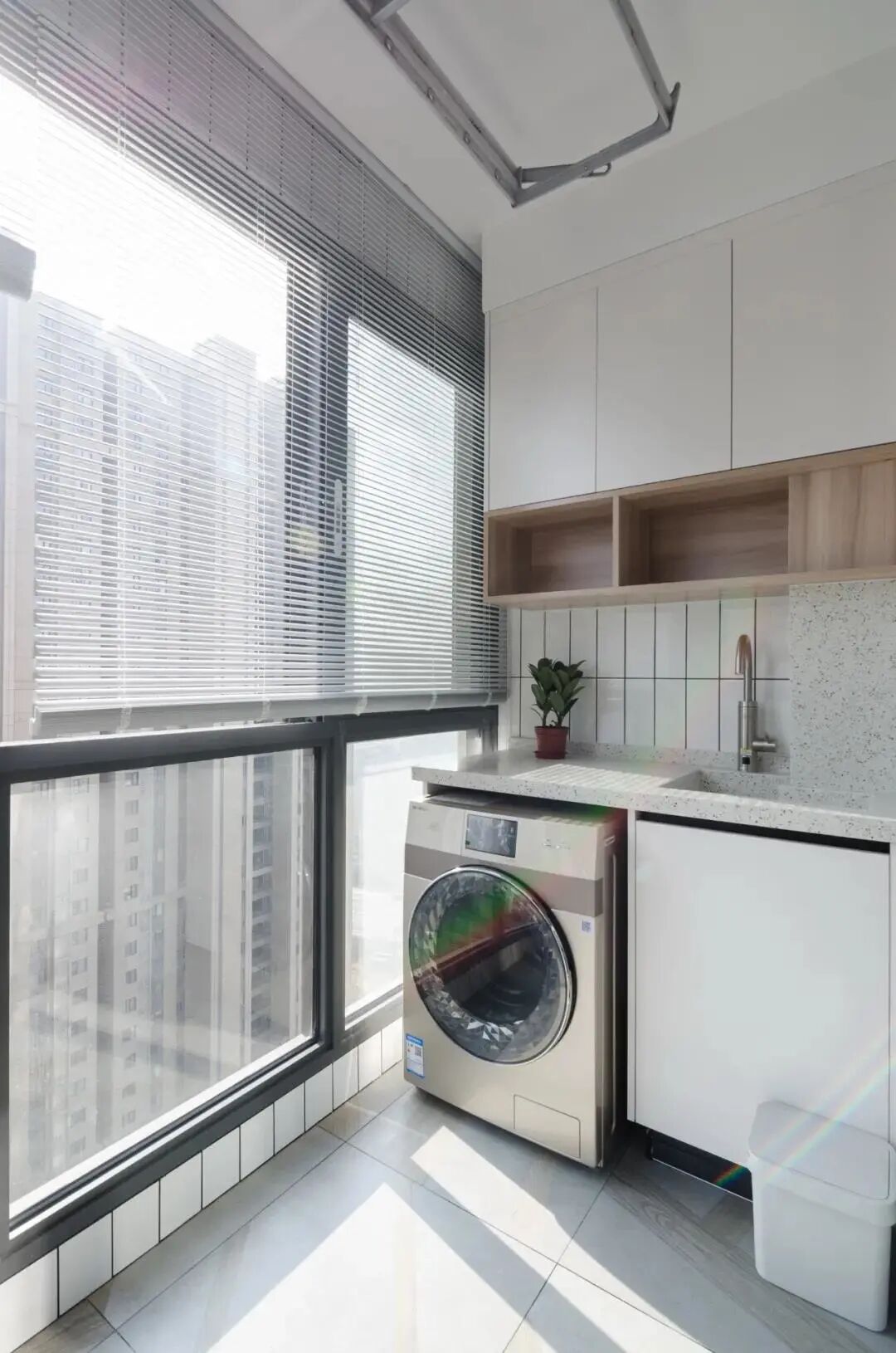 由于百叶帘能很好地隔热防晒,因此阳台安装百叶帘非常合适,无论是休闲阳台、还是阳台放洗衣机和收纳柜,都可以起到保护作用。