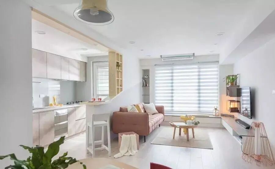 客厅不一定非要安装厚实的布艺窗帘,轻巧又好看的百叶帘可以让空间更显轻盈开阔,尤其是客厅不大的家庭,百叶帘可以在视觉上起到放大空间作用