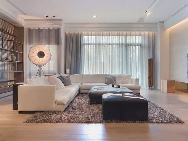 如果因为阳台的遮挡,想让客厅的光线更加明亮充足,则可以选择浅色调或透光性强的薄布材料制作的窗帘,有镂空的布料也是不错的选择。