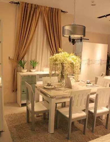 餐厅的窗帘气氛上要活泼欢快、明快,建议采用暧色如:橙色等来增进食欲,色调掌握在餐桌、墙壁两者色调之间,款式可以采用悬挂、对开或单开方式,外帘是窗纱,里帘多用棉制品。