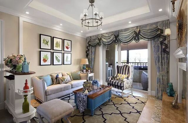4、对于大户型,欧式风格的装修家庭,也可以选择深色带花朵图案的窗帘,可以降低室内的空旷感。