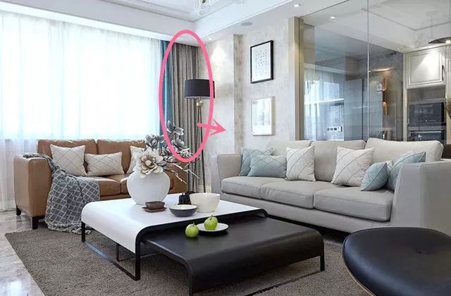 选择和墙壁颜色相近的颜色,建议要比墙壁颜色深几度,避免产生视觉混乱。如果是杏色墙壁,可以选择比杏色深一点点的米黄色窗帘;带点灰度的白墙,可以选择浅灰色窗帘。