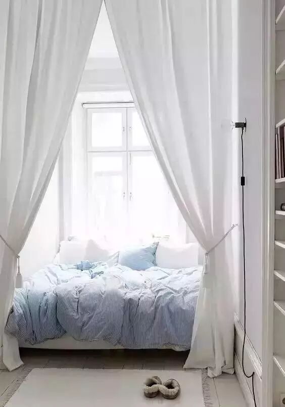 ◆ 卧室需要遮光、隔音功能,可以选择厚实一些的天鹅绒窗帘。