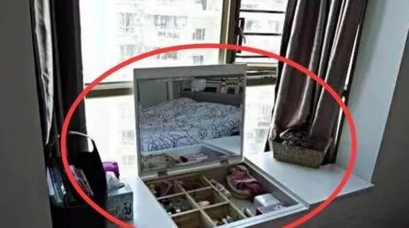 三、还能把飘窗做成梳妆台,这样的做法你是不是第一次见?做法就是,让木工做一个简单的柜子,然后放在飘窗台上,翻开柜子里面就是梳妆镜,这样的搭配觉得怎么样?