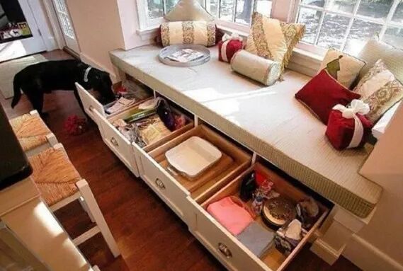 二、还可以在飘窗台上铺上一块自己喜欢的材质,再做一个小柜子,既可以当收纳用,又可以坐在上面休憩,很惬意的生活!