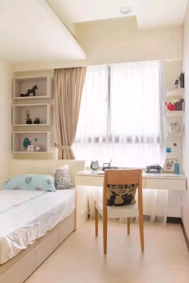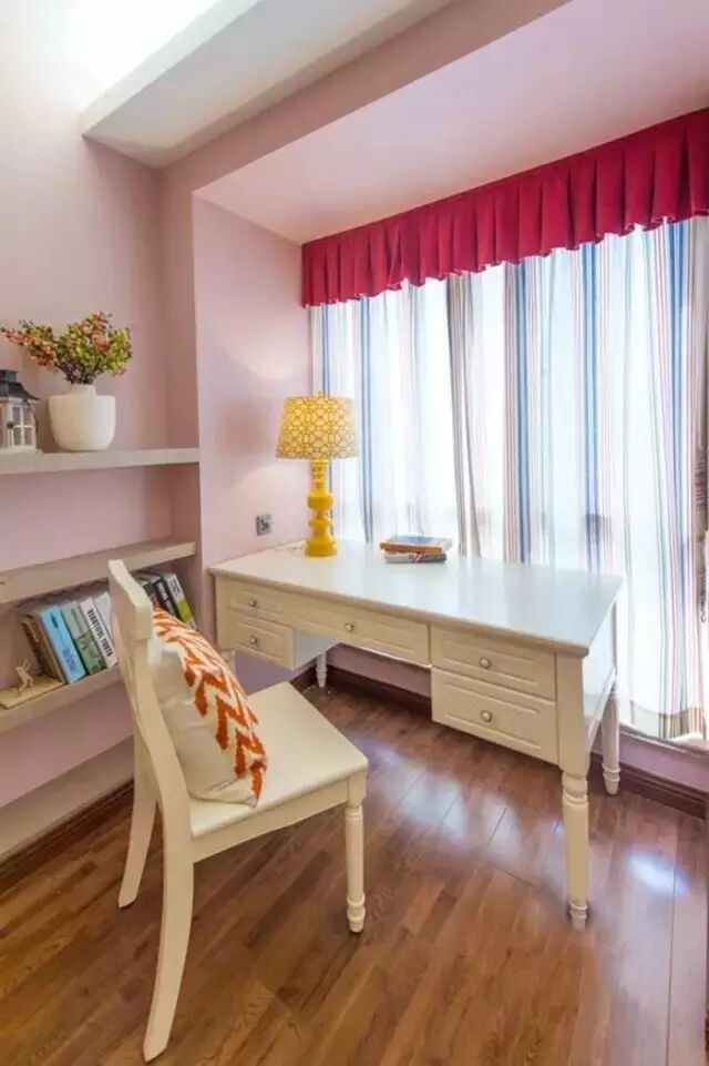 之前也说过亮色系的窗帘有增亮的效果,在工作台(书桌)选用纯白色系的窗帘会有刺眼的感觉,那么窗帘带碎花就再合适不过了。