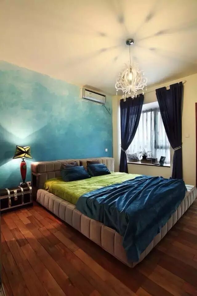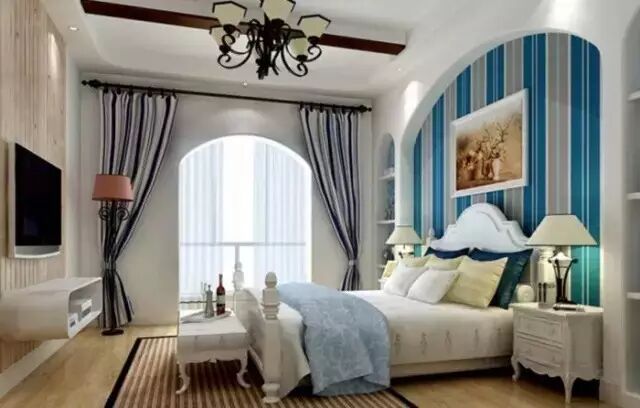 卧室里是地中海风格,窗帘肯定也选择地中海风格来好啊。明亮的蓝在卧室里就不适合了,这种暗色蓝却是不错的,也能增加你想睡觉的欲望。