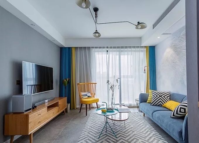 撞色的窗帘拥有鲜艳的色彩,可呈现不同氛围,能多一点明亮,多一些活泼,让个性十足的空间更有层次感。