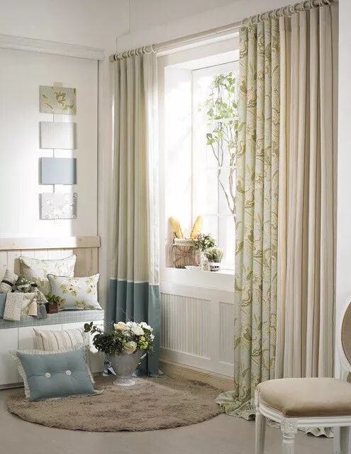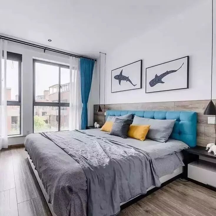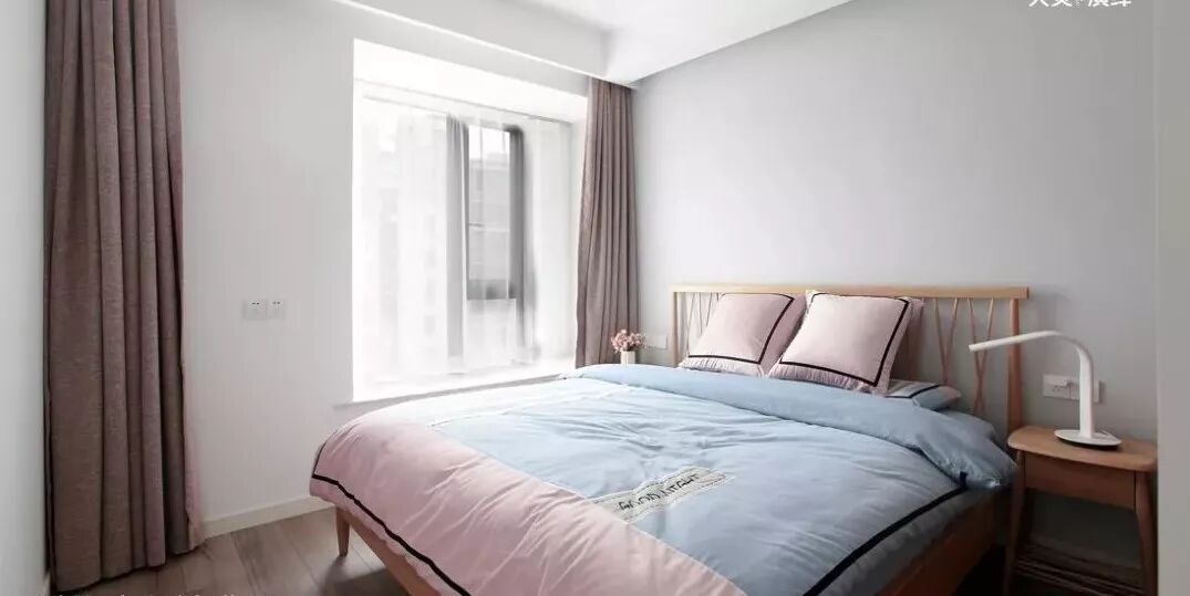 色彩方面不宜大面积的使用高饱和和高对比的颜色,面料尽量选择厚实有质感并且遮光效果好的,如果单层布料不能满足遮光要求,加上一层衬布不仅可以提升遮光效果同时还具备保温隔音的效果,有效提升房间的舒适度。