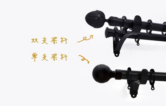 ▼ 如图,窗帘杆分为单支架杆和双支架杆。