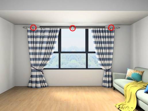 ▼ 窗帘杆直径规格一般为25~28MM。一般情况下,长度超过2.5米,窗帘杆中间需要加装支撑架。注意预留支撑架安装位置。