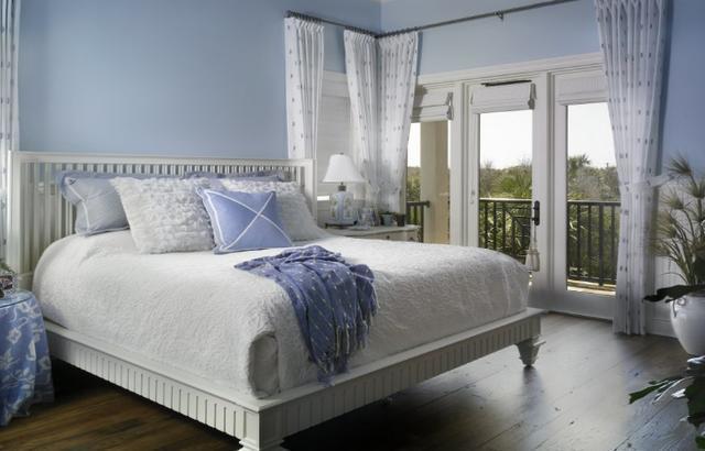 卧室的窗帘最好有两层,外面的一层选择比较厚的麻棉布料,用来遮挡光线、灰尘和噪音,营造好的休憩环境,里面一层可用薄纱、蕾丝等透明或半透明的料子,主要用来营造浪漫的情调。