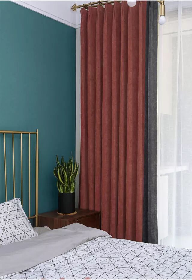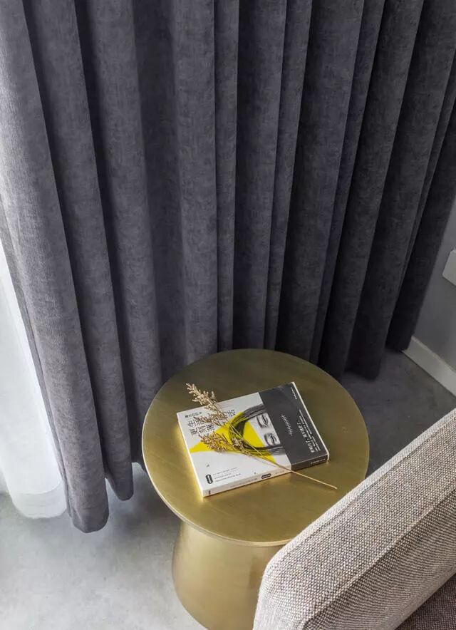 雪尼尔不仅面料厚实,且质感顺垂。搭配大白纱,又不会让深色家居看起来沉闷乏味。遮光性强,夏季隔热,冬季聚暖!
