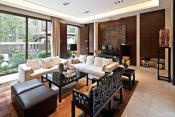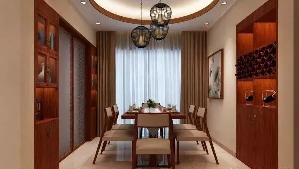 选择窗帘的时候,不一定必须是中式风格,但是必须要与整体风格相融合,过于跳脱的颜色会与客厅格格不入,影响整体视觉观感。
