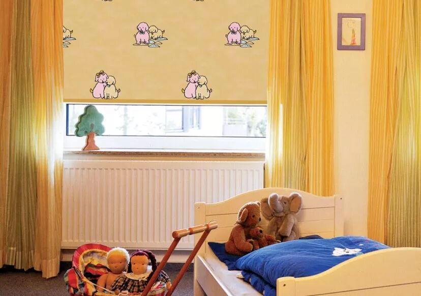 颜色是个奇妙的东西,会影响人的神经系统。特别是孩子影响更大,所以儿童房的窗饰在颜色上要花点心思。可选式样简单的并具有个性色彩的单色蜂巢帘或者具有个性图案的卷帘来增加童趣