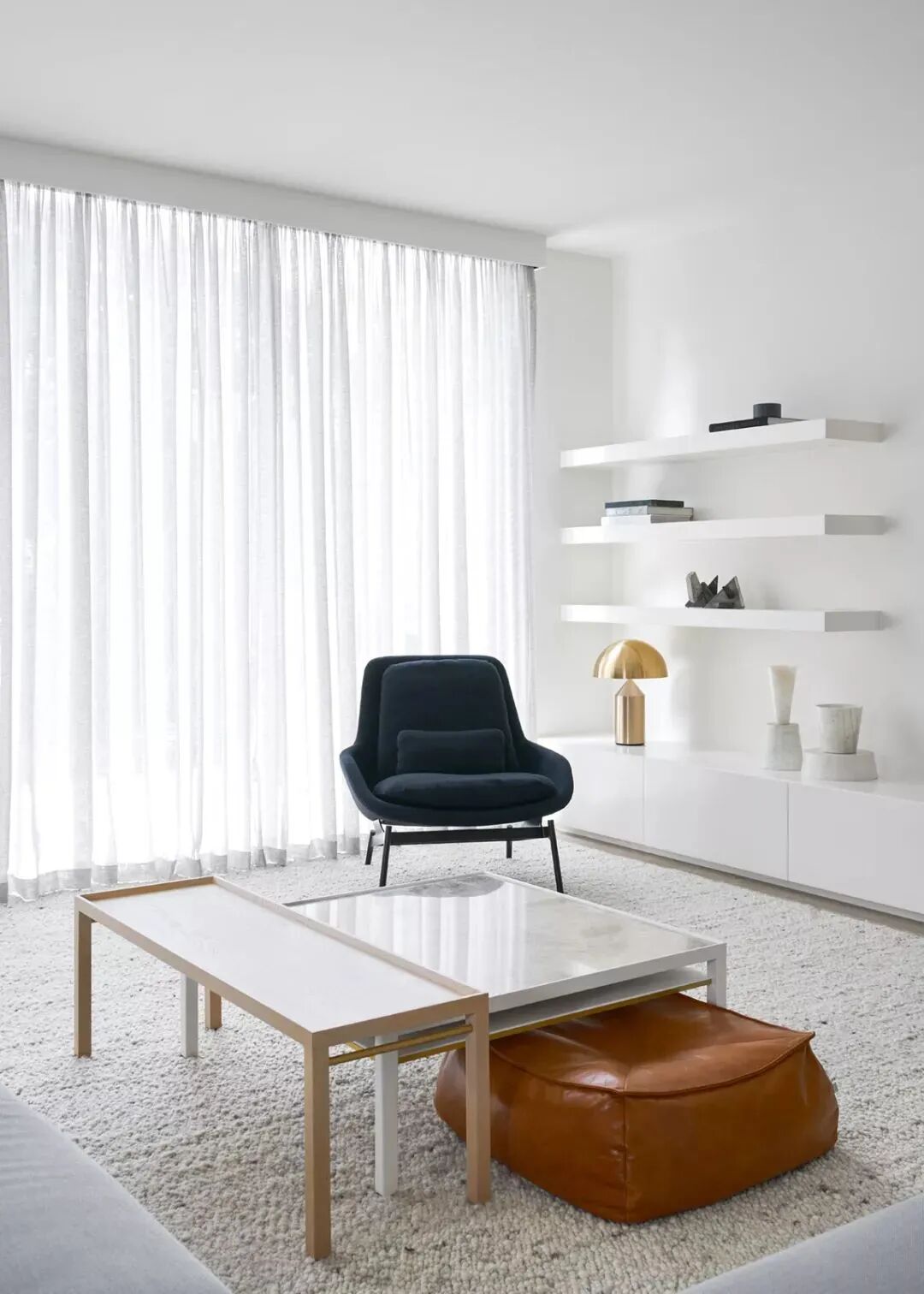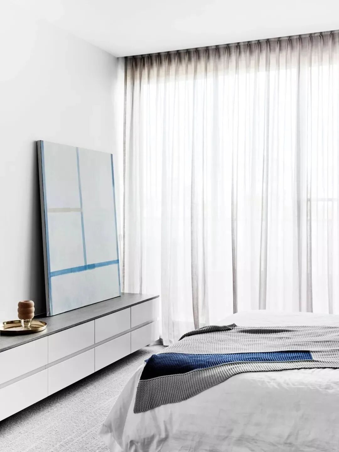 还有一种渐变或者双层的窗帘,蓝色有一种特别仙的感觉;营造出一种静谧干净的环境。