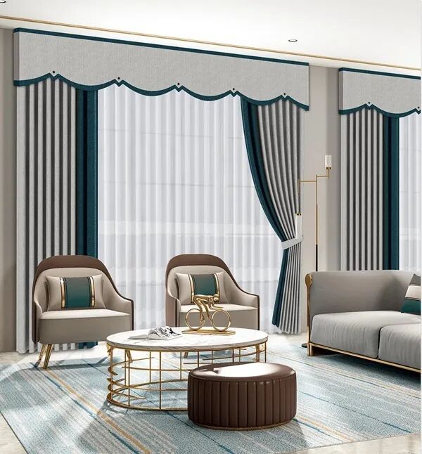 金色、银色、交错着白色让客厅的窗帘能引起关注也能融入环境。
