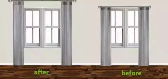 一般大家都觉得窗帘的尺寸要根据窗户的大小来决定,其实用这种方式挂出来的窗帘会让空间看起来很不均匀,尤其是对于小户型来说,会让空间看起来更加局促,比如下图这样。