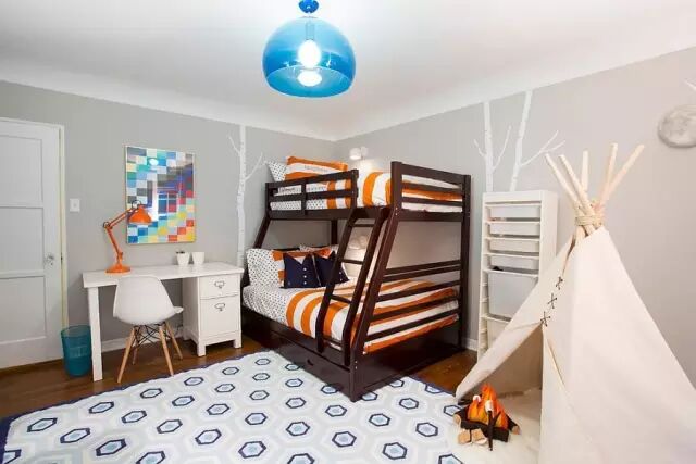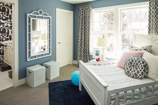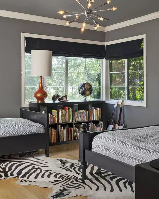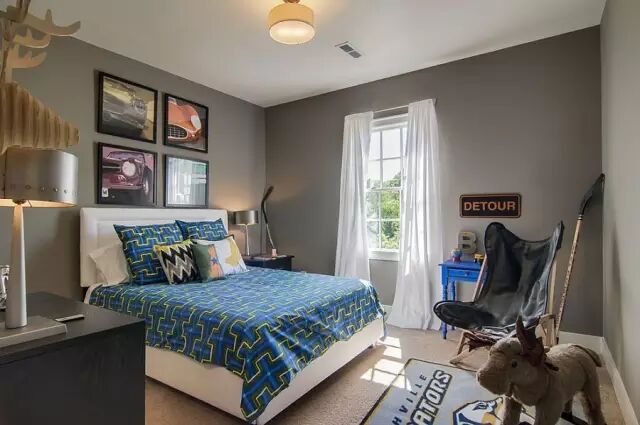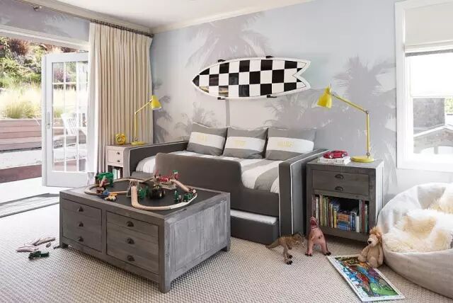 再来看儿童房的窗帘搭配,灰色,如果用在孩子们的卧室中,会有一个最大的优点就是:中性!(百搭)