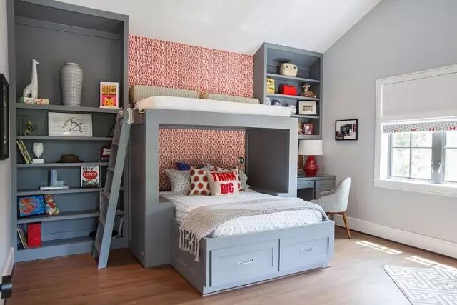 灰色调配以点缀,整体不再是童趣,而是一份灵气,房间仿佛都随着孩子一起长大了。