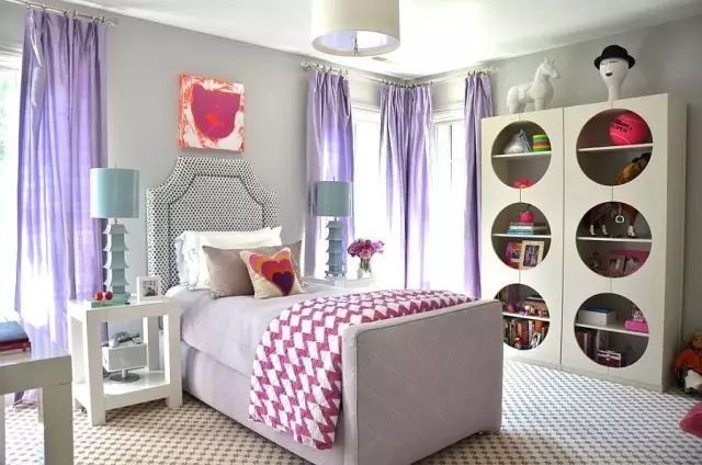 紫色窗帘的映衬下,房间里瞬间有了气质,仿佛住了一位高贵的小公主。