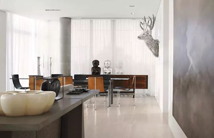 窗帘色调应与家具及饰品协调搭配,营造和而不同的层次感,注重面料的质感与垂感,这样就可以营造出一种庄重简洁、大方明亮的视觉效果。