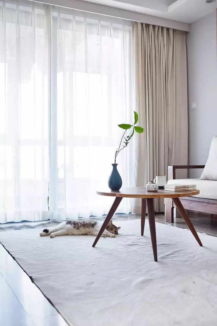 用窗帘呼应地毯、沙发等其它软质家装的色感,是简单又保险的做法