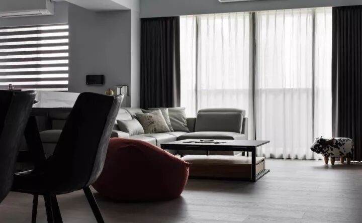 高级灰自带现代味,天生一副文艺感爆表的“高冷范”。整体简洁纯粹,以免多色间争奇斗艳,带来躁动感。用窗帘呼应地毯、沙发等其它软质家装的色感,是简单又保险的做法。