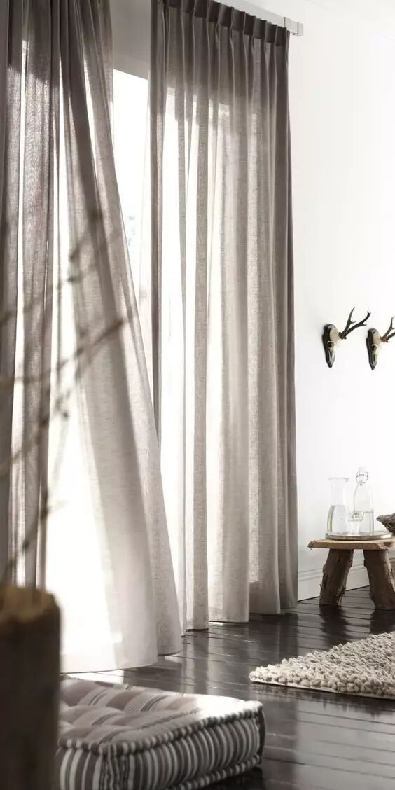 上图这种类似薄纱、棉麻类的窗帘虽然好看,但遮光性差,透光严重,想要来遮光、隔热几乎是不可能的。