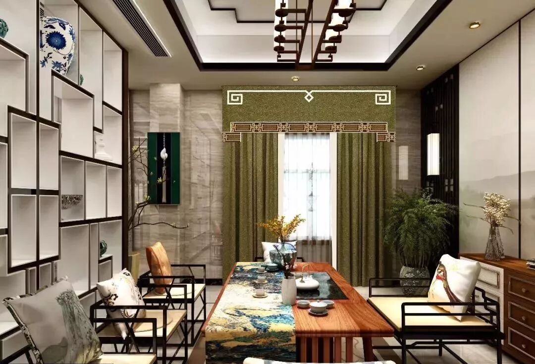既然被称作是新中式,那么新是空间装修中需要格外强调的。一般的中式风格家装大多古色古香,也就是偏旧,大多使用仿古造型家具。在新中式风格家装中,保证了基本的中式风格以外。可以适量选择一些创意感十足的软装配饰等,颜色的运用也可以大胆一些。上面新中式客厅效果图中的色调选择上并没有明显的中式风格代表,但是家具的选用依然能够体现稳重的中式风格。空间内窗帘的使用选择了不会出错的百搭灰色,稳重简约。