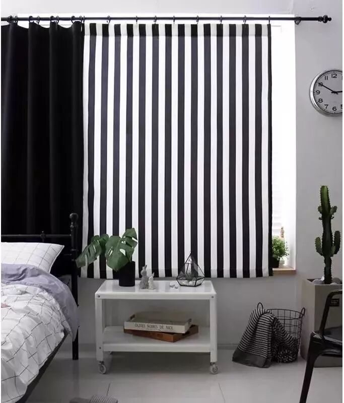 比上下双色的窗帘再多一点点,就是条纹图案了。条纹图案是想要营造撞色效果的好选择,当中的重点也是因为有了白色过渡。