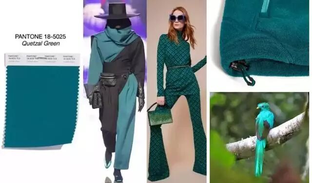 近几年时尚圈刮起了一股绿色旋风。而本季流行的咬鹃绿,顾名思义来源于凤尾绿咬鹃这种鸟类羽毛的颜色。