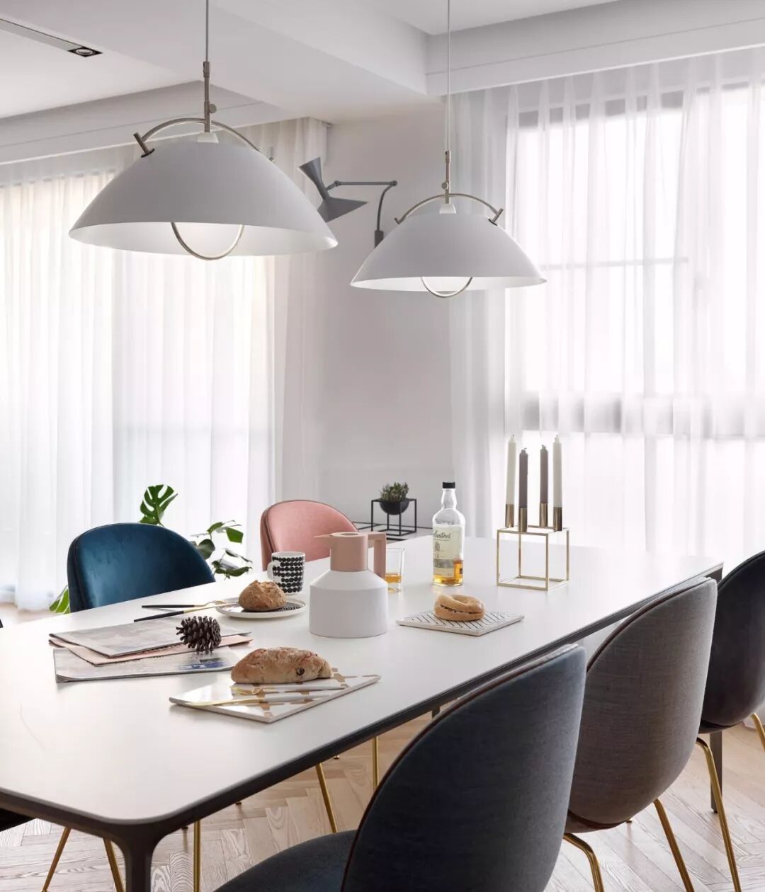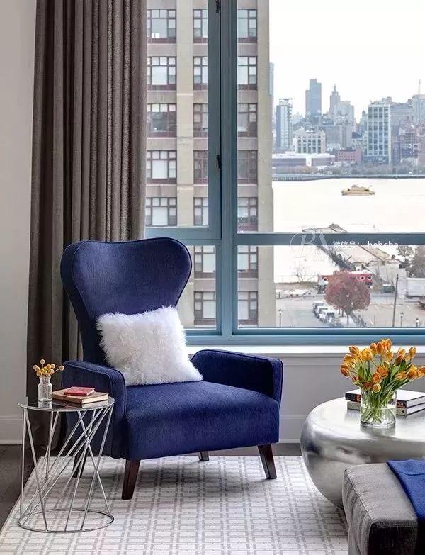 百合白空间+孔雀蓝窗帘