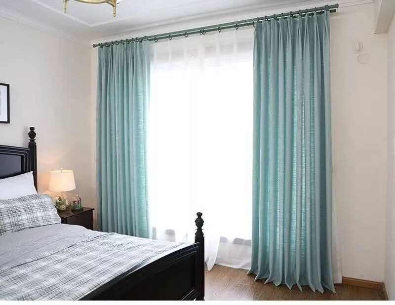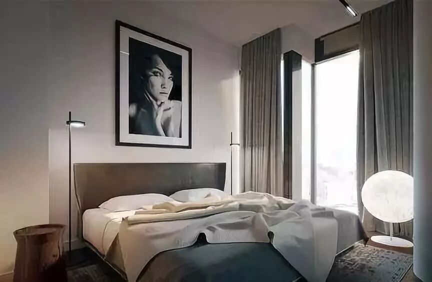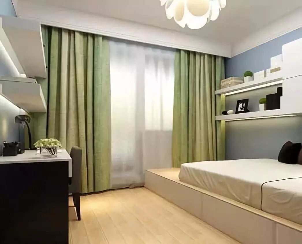 卧室的窗帘更注重功能性,要充分闭关以保证睡眠。卧室内窗帘可以选择落地款,以免窗帘过短而漏光,对睡眠质量要求高的业主,可以考虑在窗帘内侧加一层遮光布或用遮光比较好的窗帘,以加强遮光效果。