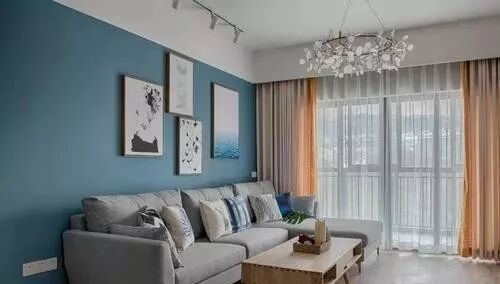 沙发和窗帘,一个作为主色调,另一个作为背景色调的组合,也是常见的。