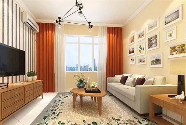 比如米色的沙发搭配明黄色的窗帘。