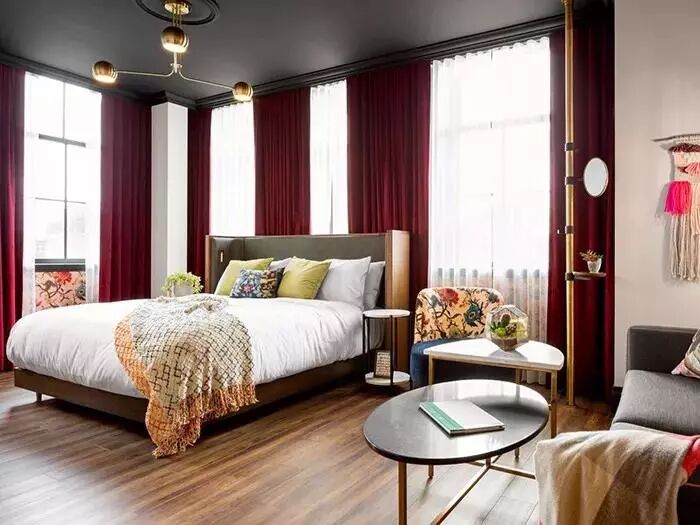 卧室,选平衡色、静感色窗帘较好。