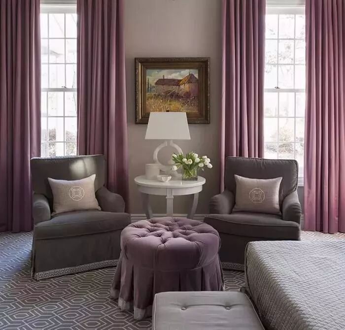 配搭一帘清雅的柔薰衣草色单色布窗帘,