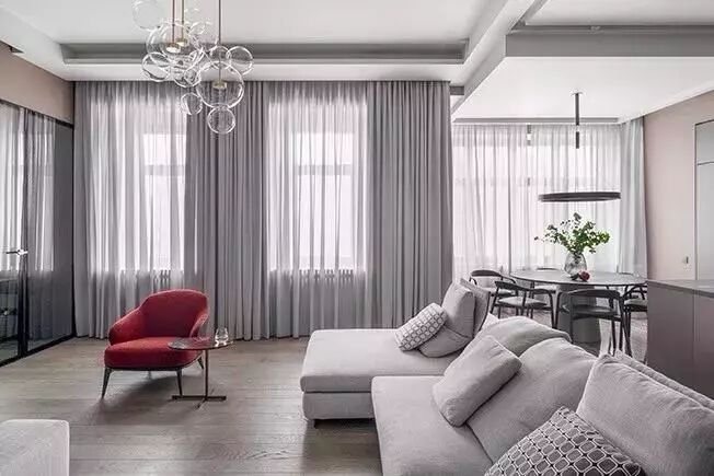 ▲灰色是低调和高级感的代表色,灰色窗帘的遮蔽效果很好,更重要的是,它能赋予居室新的感觉和气质,最重要的是有气质!